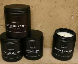 The black jars look sharp on my shelf and the vintage oak scent actually makes the living room feel cozier during winter nights.